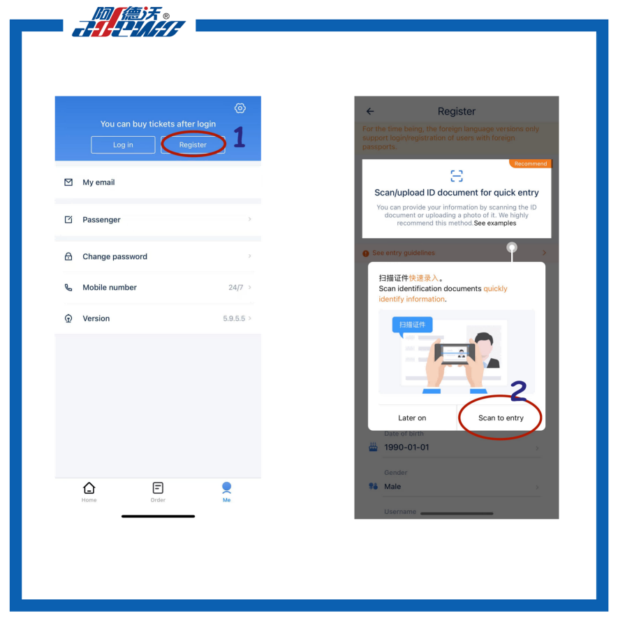 "मी" वर जा ->"नोंदणी करा" -> तुमचा पासपोर्ट स्कॅन करा आणि तुमची वैयक्तिक माहिती पूर्ण करा.