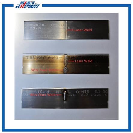 खालीलप्रमाणे तुलना केलेल्या प्रतिमांमधून पाहिल्याप्रमाणे, वायर-फीड वेल्डिंग नमुन्याचे वेल्ड जॉइंट अतिरिक्त धातूच्या सामग्रीच्या जोडणीमुळे पुढे जाते.